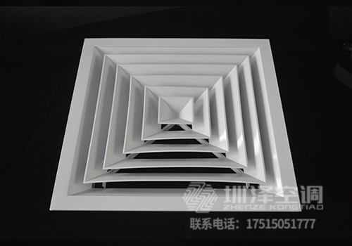 方形散流器先調(diào)挺直,表面光潔,葉片角度為固定式,葉片采用夾角片沖壓連接,整個(gè)葉片與邊框采用分離式結(jié)構(gòu),以方便安裝與調(diào)節(jié)。設(shè)計(jì)時(shí)可根據(jù)房間造型不同,選用不同出風(fēng)方向的散流器,可與調(diào)節(jié)閥配套使用。方形散流器有四種氣流吹出形式,分別為一面吹(A1SO)、二面吹(A2SO)、三面吹(A3SO)、四面吹(A4SO)。鋁合金表面經(jīng)陽極氧化處理,也可根據(jù)用戶要求進(jìn)行靜電噴塑處理。